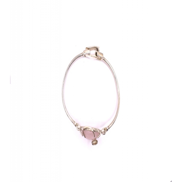Βραχιόλι χειροπέδα ασημένια 925 με οβάλ ροζ χαλαζία με λουστρέ φινίρισμα.Είναι ένα βραχιόλι που εφαρμόζει τέλεια στο χέρι σας.