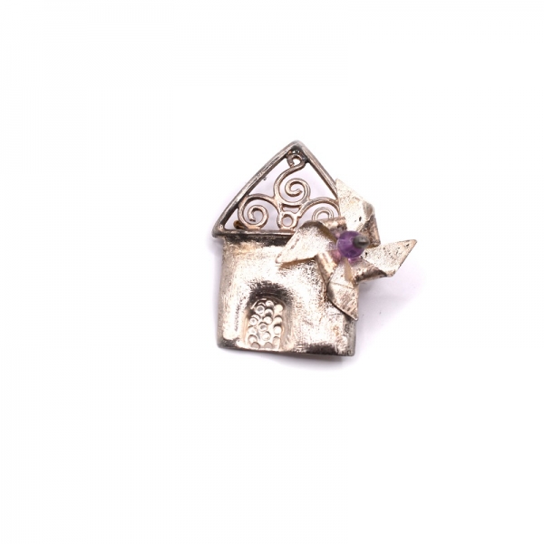 Kαρφίτσα ασημένια 925 χειροποίητο ανεμόμυλο με αμέθυστο και ματ φινίρισμα.Είναι ευκολοφόρετη καρφίτσα που μπορείτε να την βάλετε στο παλτό σας.