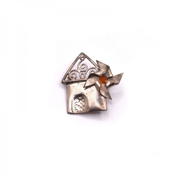 Kαρφίτσα ασημένια 925 χειροποίητο ανεμόμυλο με κορνεόλη και ματ φινίρισμα.Είναι ευκολοφόρετη καρφίτσα που μπορείτε να την βάλετε στο παλτό σας.