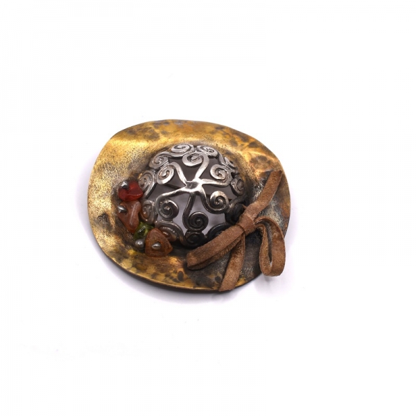 Kαρφίτσα ασημένια χειροποίητη καπέλο με κορνεόλη ματ φινίρισμα.Είναι ευκολοφόρετη καρφίτσα που μπορείτε να την βάλετε στο παλτό σας