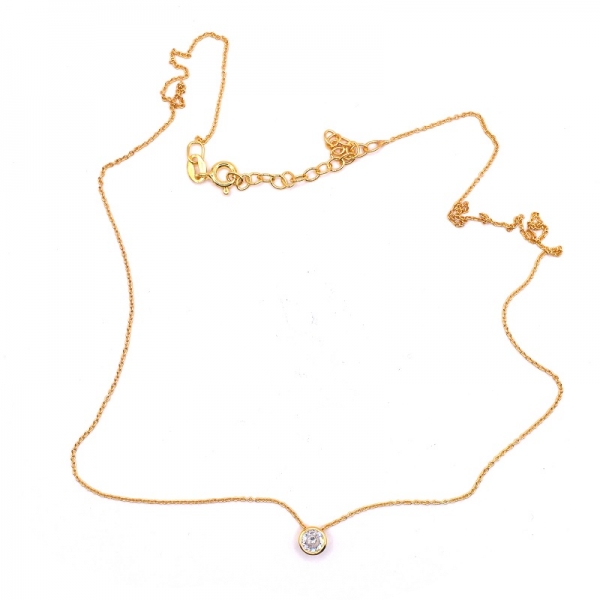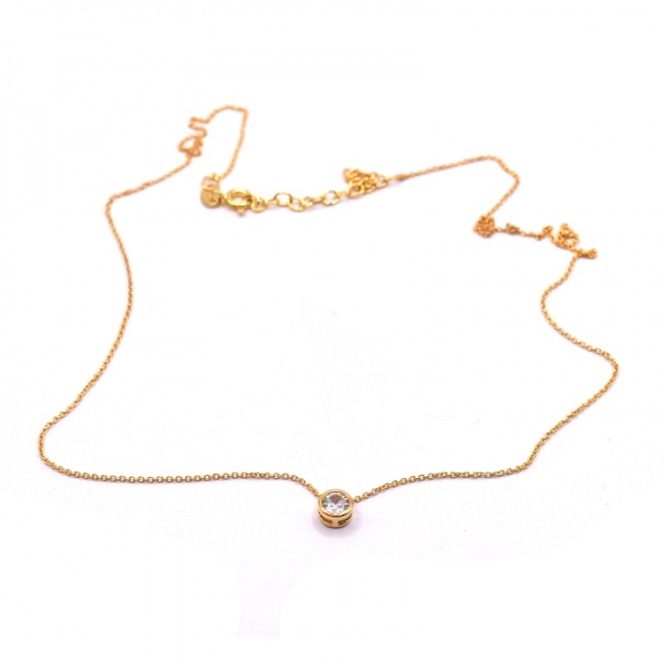 Kολιέ ασημένιο επιχρυσωμένο 925 πάνω έχει ένα στρογγυλό ζιργκόν σε λουστρέ φινίρισμα.Είναι όμορφο να το φοράτε κάθε μέρα.Το μήκος της αλυσίδας είναι 45 cm.