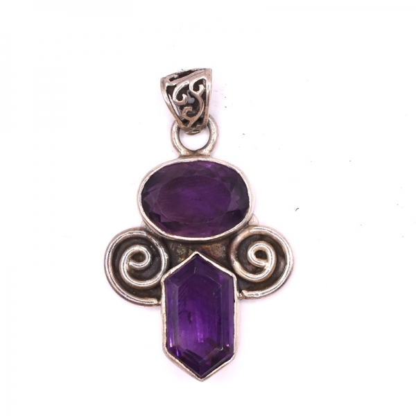 Μενταγιόν ασημένιο 925 χειροποίητο με αμέθυστο δεμένες με καστόνι έχει λουστρέ φινίρισμα. Η πέτρα αμέθυστο συμβολίζει την προσφορά, την αναγέννηση, την γαλήνη και την ειρήνη.