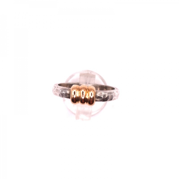 Δαχτυλίδι ασημένιο χειροποίητο σφυρήλατο 925 με χρυσό Κ 14 και λουστρέ φινίρισμα.Το νούμερο του δαχτυλιδιού έιναι 54.