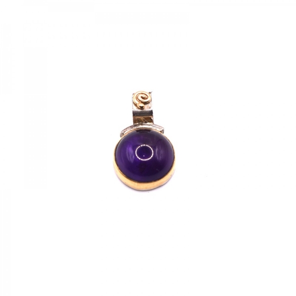 Ασημένιο μενταγιόν 925 τo καστόνι και η σπείρα είναι με χρυσό Κ 18 και αμέθυστο πέτρα με λουστρέ φινίρισμα.Ένα όμορφο μενταγιόν διακριτικό να το φοράτε κάθε μέρα.