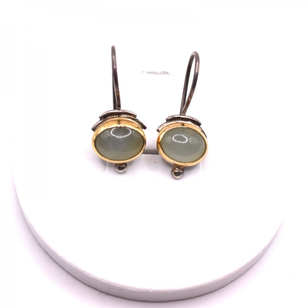 Σκουλαρίκια ασημένια χειροποίητα 925 περαστά το καστόνι είναι με χρυσό Κ 18 και άκουα μαρίνα πέτρα λουστρέ φινίρισμα.Ένα όμορφο σκουλαρίκι να το φοράτε κάθε μέρα.