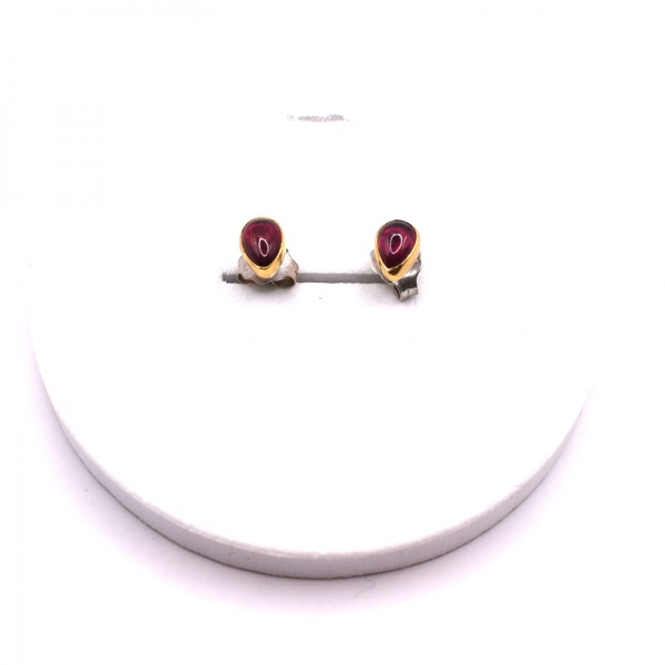 Σκουλαρίκια ασημένια χειροποίητα 925 καρφωτά το καστόνι είναι με χρυσό Κ 22 και γρανάδα πέτρα λουστρέ φινίρισμα.Ένα όμορφο σκουλαρίκι να το φοράτε κάθε μέρα.
