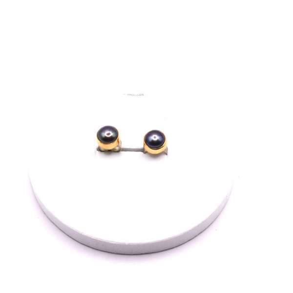 Σκουλαρίκια ασημένια 925 καρφωτά το καστόνι είναι με χρυσό Κ 18 και μαύρο μαργαριτάρι πέτρα λουστρέ φινίρισμα.Ένα όμορφο σκουλαρίκι να το φοράτε κάθε μέρα.