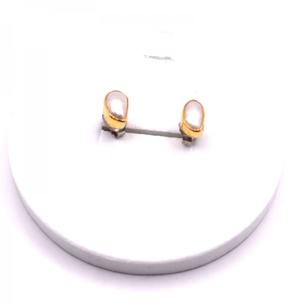 Σκουλαρίκια ασημένια 925 καρφωτά το καστόνι είναι με χρυσό Κ 22 και μαργαριτάρι πέτρα λουστρέ φινίρισμα.Ένα όμορφο σκουλαρίκι να το φοράτε κάθε μέρα.
