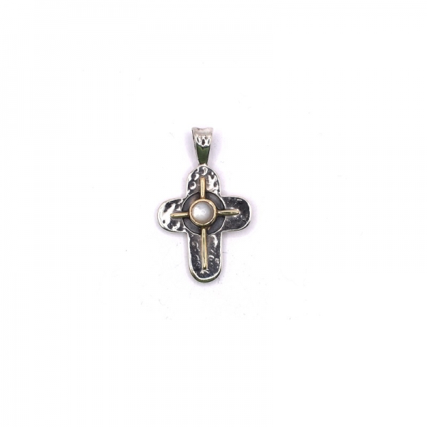 Σταυρό ασημένιο χειροποίητο 925 το καστόνι είναι με χρυσό Κ 14 και φίλντισι πέτρα με λουστρέ φινίρισμα.Ένα όμορφο σταυρό για να το φοράτε κάθε μέρα.