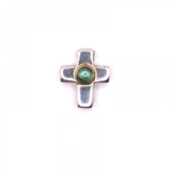 Σταυρό ασημένιο χειροποίητο 925 το καστόνι είναι με χρυσό Κ 18 και τουρμαλίμη πέτρα με λουστρέ φινίρισμα.Ένα όμορφο σταυρό για να το φοράτε κάθε μέρα.