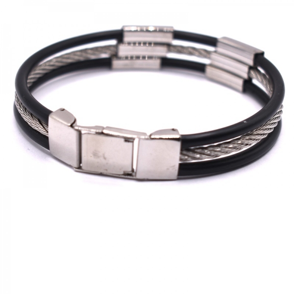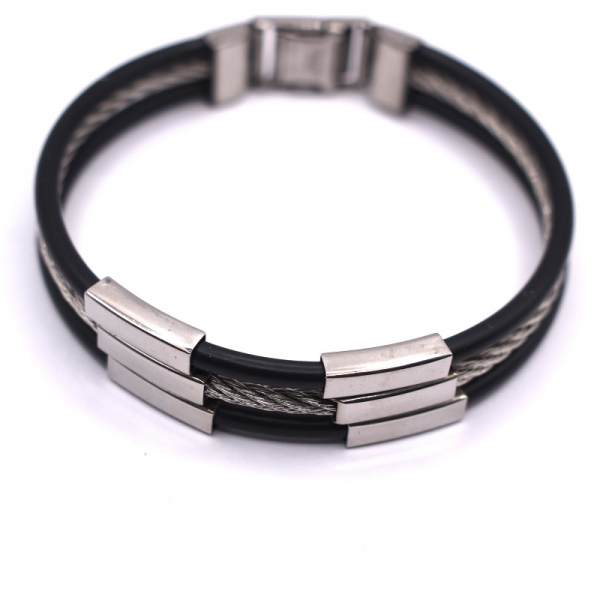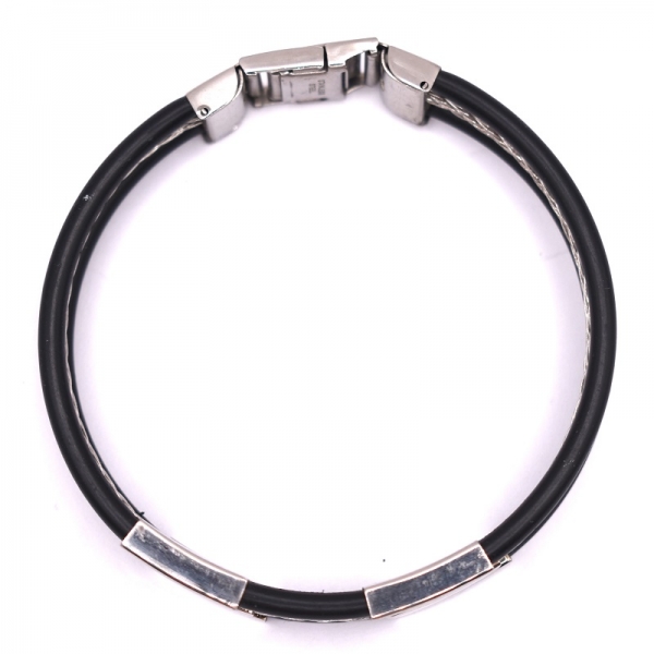 Βραχιόλι αντρικό με ατσάλι σε λευκό χρώμα χειροπέδα έχει και καουτσούκ σε λουστρέ φινίρισμα,Το κούμπωμα είναι ασφαλείας.Το βραχιόλι έχει μήκος 22 cm |