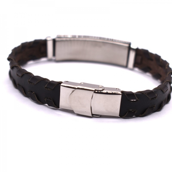 Βραχιόλι ατσάλι αντρικό με καφέ δερματίνη σε λευκό και χρυσό χρώμα με λουστρέ φινίρισμα,το κούμπωμα είναι ασφαλείας.Το βραχιόλι έχει μήκος 22 cm |