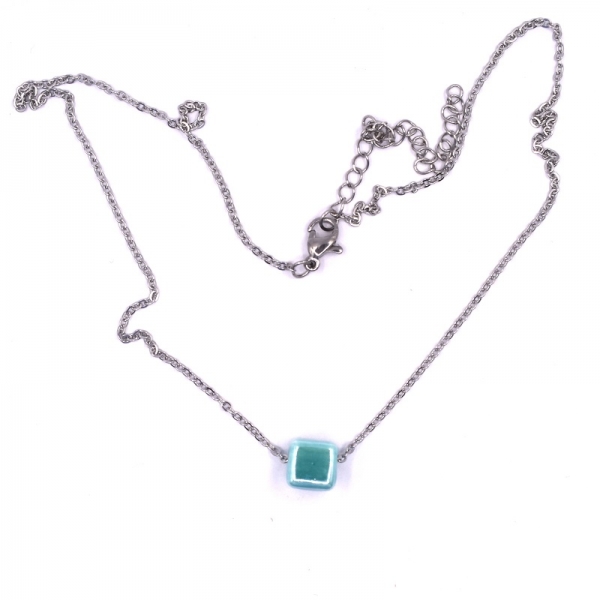 Kολιέ σε ασημί χρώμα,η αλυσίδα είναι ατσάλι και έχει περασμένη μια πράσινη τετράγωνη πέτρα.Το μήκος της αλυσίδας είναι 40 cm.Είναι ευκολοφόρετο μπορείτε να φοράτε κάθε μέρα.'Ομορφο δώρο για σας και για τους φίλους σας. |