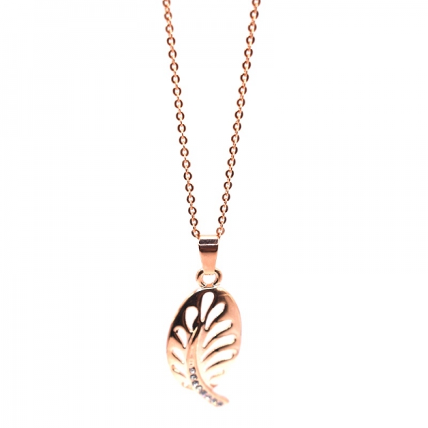 Κολιέ ατσάλινο σε ροζ χρώμα με στρας,το φύλλο απάνω έχει στρας.Η αλησίδα έχει μήκος 42.5 cm και με την προέκταση φθάνει το 47 cm |