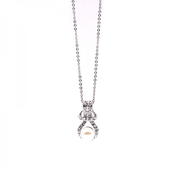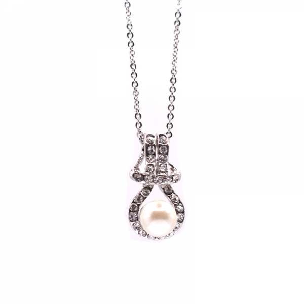 Κολιέ ατσάλινο σε λευκό χρώμα με πέρλα και στρας και λουστρέ φινίρισμα.Η αλησίδα έχει μήκος 42.5 cm και με την προέκταση φθάνει το 47.5 cm |