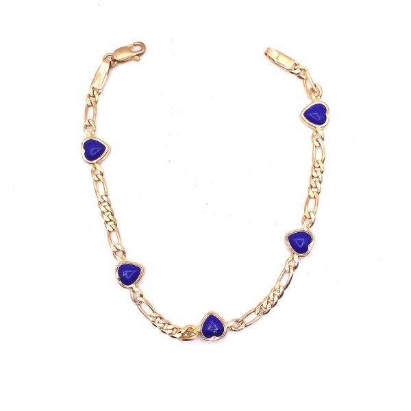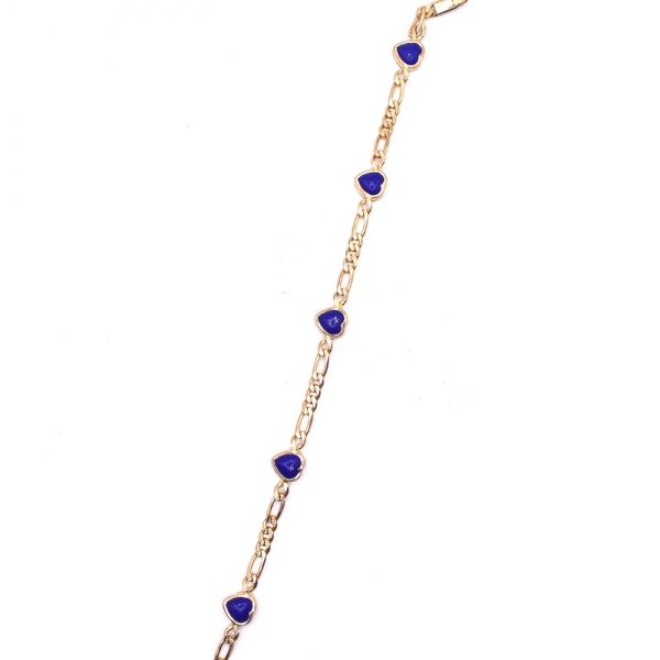 Βραχιόλι σε χρυσό Κ14 αλυσίδα πάνω έχει 5 καρδιές με λάπις λάζουλι πέτρα σε λουστρέ φινίρισμα.Ένα όμορφο δώρο για το χέρι σας