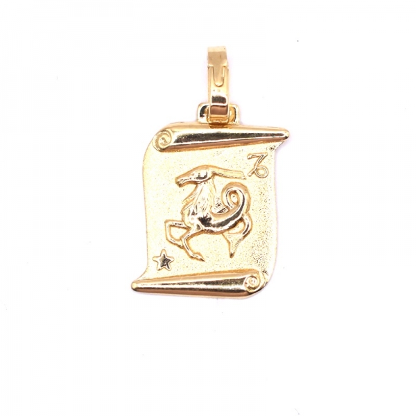 Ζώδιο αιγόκερως σε χρυσό Κ14 πάνω σε πάπυρο και λουστρέ και ματ φινίρισμα.Όμορφο δώρο να το φορέσετε στο λαιμό σας.