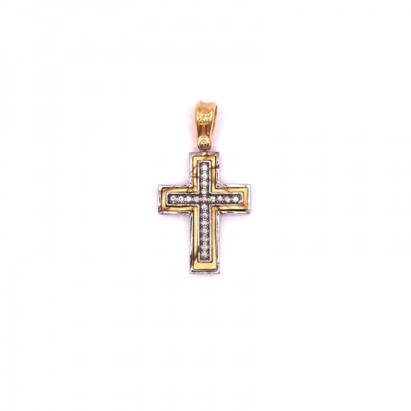 Σταυρός σε χρυσό και λευκόχρυσο Κ14 με ζιργκόν σε ματ και λουστρέ φινίρισμα.Όμορφος σταυρός για το λαιμό σας.