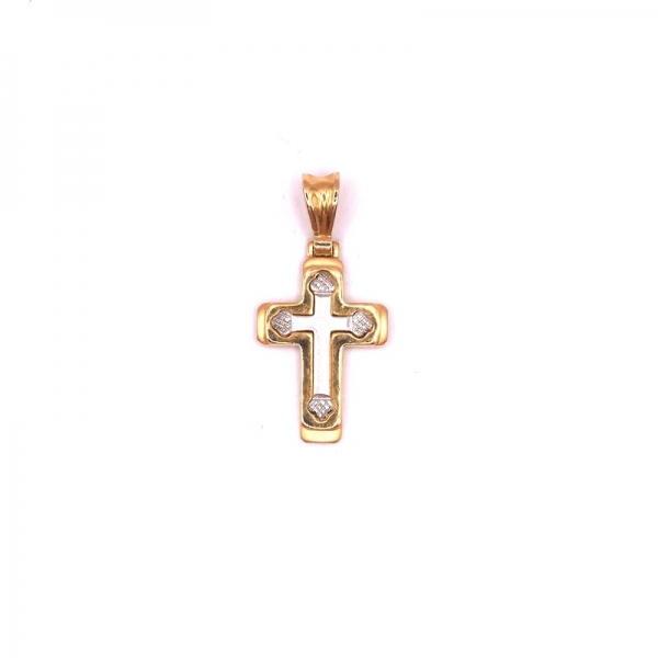 Σταυρός σε χρυσό και λευκόχρυσο Κ14 σε λουστρέ φινίρισμα.Όμορφος σταυρός για το λαιμό σας.