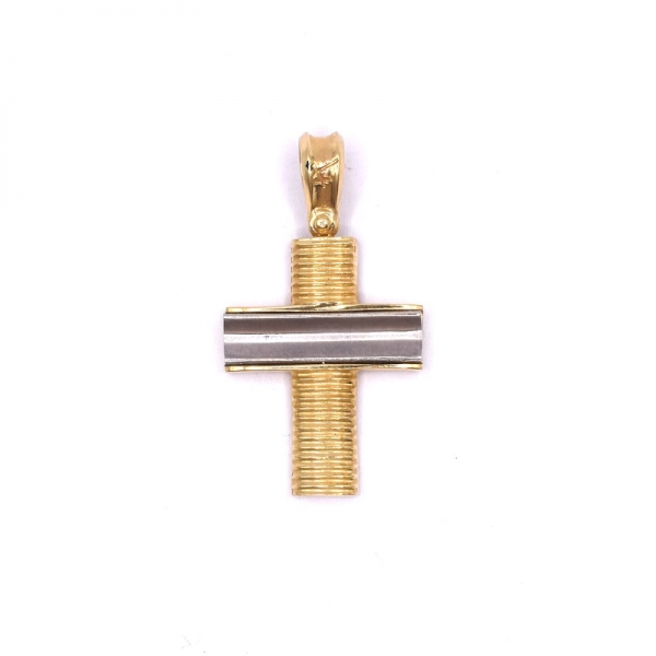 Σταυρός δίχρωμο Κ14 σε λουστρέ φινίρισμα.Όμορφος σταυρός για το λαιμό σας.