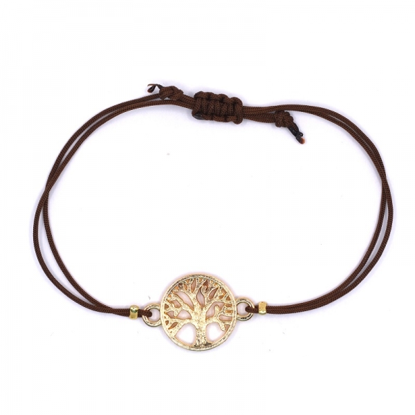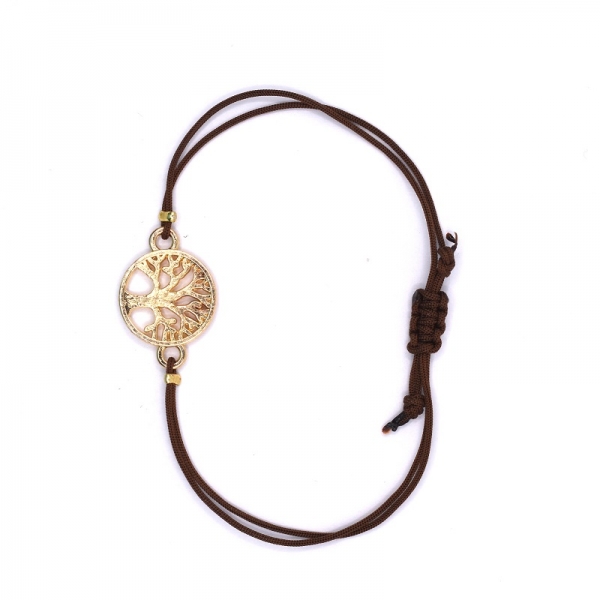 Βραχιόλι σε χρυσό χρώμα,το μοτίφ είναι δέντρο της ζωής είναι περασμένο από καφέ κορδόνι στο τελείωμα έχει μακραμέ.'Ομορφο δώρο για σας και για τους φίλους σας. |