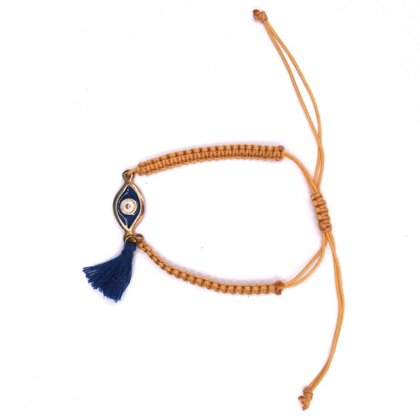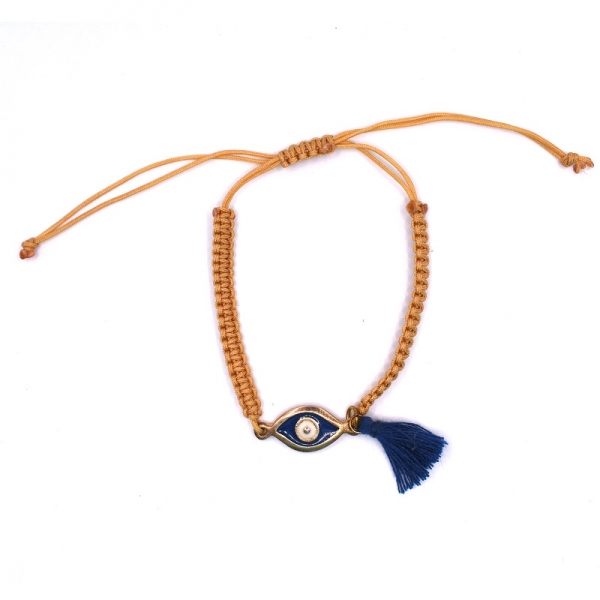 Βραχιόλι σε χρυσό χρώμα,το μοτίφ είναι μάτι και το κορδόνι σε μπεζ χρώμα και αν θέλετε να κρέμετε φούντα.'Ομορφο δώρο για σας και για τους φίλους σας.