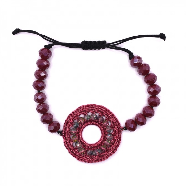 Bραχιόλι φω σε λευκό χρώμα,είναι περαμένες οι πέτρες σε κορδόνι και στην μέση έχει ένα μοτίφ που είναι πλεγμένο και πάνω έχει βυσσινή πέτρες,στο τελείωμα είναι με μακραμέ.'Ομορφο δώρο για σας και για τους φίλους σας.