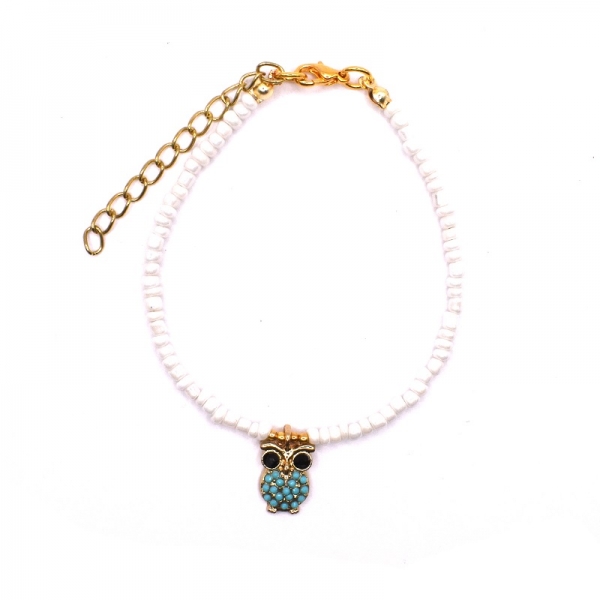 Βραχιόλι φω σε χρυσό χρώμα περασμένο σε ατσαλόσυρμα άσπρες μικρές πέτρες στην μέση έχει μία κουκουβάγια,στο τελείωμα είναι με κούμπωμα.Είναι ευκολοφόρετο μπορείτε να φοράτε κάθε μέρα.'Ομορφο δώρο για σας και για τους φίλους σας.