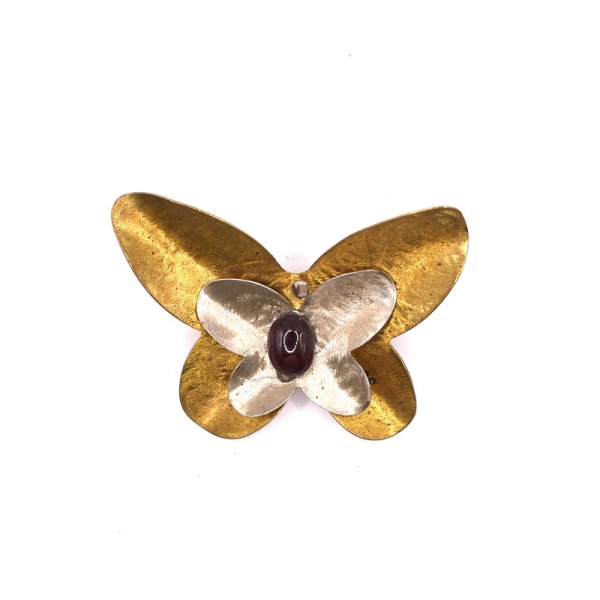 Καρφίτσα σε φω σε χρυσό και λευκό χρώμα πεταλούδα πάνω έχει μια γρανάδα.Όμορφη καρφίτσα για το πέτο του παλτού σας.Η διαστάση της καρφίτσας είναι: Υ:3.5 χ Π: 4.5