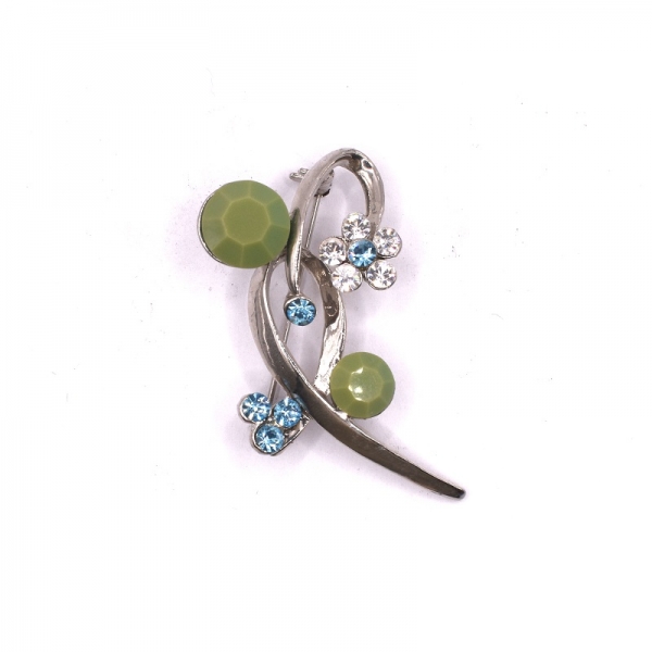 Καρφίτσα σε φω σε λευκό χρώμα έχει πάνω λουλούδι με σιελ και διαφανή στρας και δύο μέγαλες πέτρες σε σιελ χρώμα.Όμορφη καρφίτσα για το πέτο του παλτού σας.Η διαστάση της καρφίτσας είναι: Υ:4.6 χ Π: 2.6 |