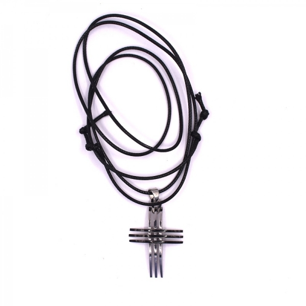 Σταυρός σε ασημί χρώμα περασμένο σε μαύρο κορδόνι.'Ομορφο δώρο για σας και για τους φίλους σας.