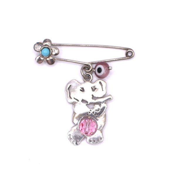 Υπέροχη παιδική παραμάνα σε ασήμι 925 για κοριτσάκι,πάνω στην παραμάνα έχει ένα λουλουδάκι με πέτρα σιελ και κρέμεται ένα ελεφαντάκι με ροζ ματάκι που γίνεται και μενταγιόν σε λουστέ φινίρισμα.Μπορείτε να το κρεμάσετε στο κρεβατάκι του μωρού σας.