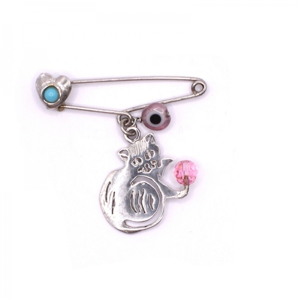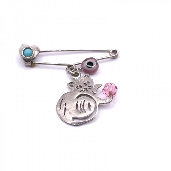 Υπέροχη παιδική παραμάνα σε ασήμι 925 για κοριτσάκι,έχει πάνω στην παραμάνα μια καρδιά με σιελ πέτρα και κρέμεται μία γάτα με ροζ χάντρα και ματάκι γίνεται και μενταγιόν σε λουστέ φινίρισμα.Μπορείτε να το κρεμάσετε στο κρεβατάκι του μωρού σας.