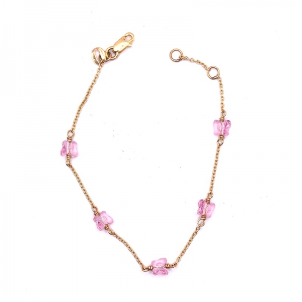 Βραχιόλι για για κοριτσάκι παιδικό σε χρυσό Κ14 αλυσίδα με ροζ πεταλούδες πέτρες σε λουστρέ φινίρισμα.Ένα όμορφο δώρο για την μικρή σας.
