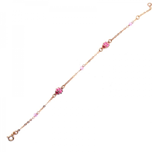 Βραχιόλι παιδικό για κοριτσάκι σε χρυσό Κ14 με σμάλτο πασχαλίτσα με ροζ πέτρες σε λουστρέ φινίρισμα.Ένα όμορφο δώρο για την μικρή σας.