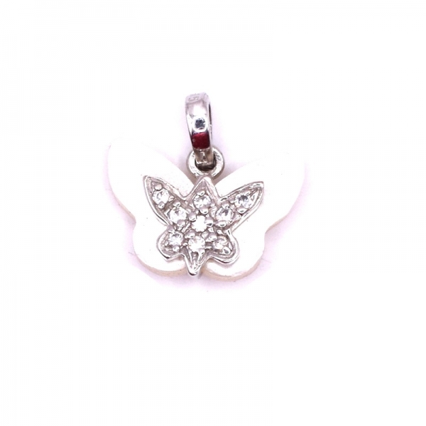 Μενταγιόν σε λευκό χρυσό Κ14 με φίλντισι και ζιργκόν πεταλούδα και λουστρέ φινίρισμα.Όμορφο κρεμαστό να το φοράτε στο λαιμό σας.