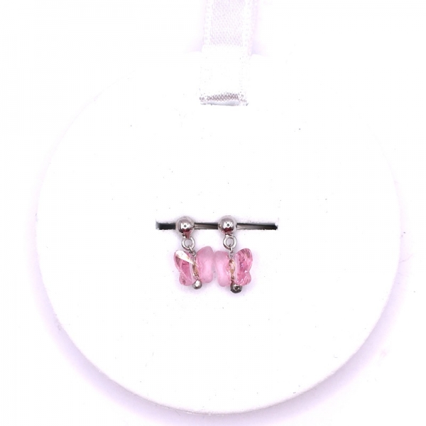 Σκουλαρίκια καρφωτά παιδικά σε λευκό χρυσό Κ14 με πέτρα ροζ πεταλούδα με λουστρέ φινίρισμα.Όμορφο σκουλαρίκι για τα κορίτσια.