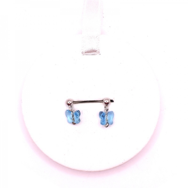 Σκουλαρίκια καρφωτά παιδικά σε λευκό χρυσό Κ14 με πέτρα σιελ πεταλούδα με λουστρέ φινίρισμα.Όμορφο σκουλαρίκι για τα κορίτσια.
