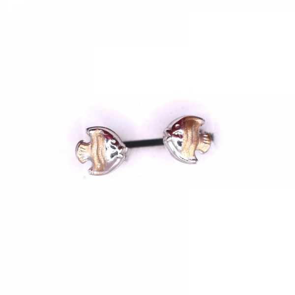 Σκουλαρίκια καρφωτά παιδικά σε λευκό χρυσό Κ14 με σμάλτο ψάρι και λουστρέ φινίρισμα.Όμορφο σκουλαρίκι για τα κορίτσια.