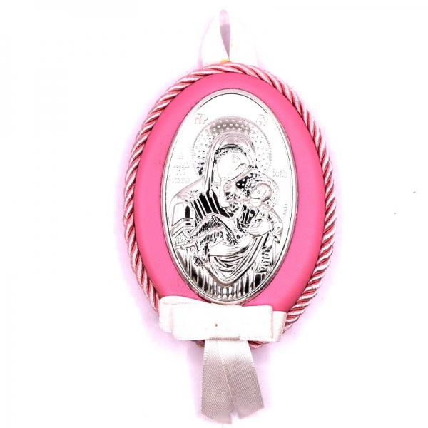 Εικονάκι κούνιας ασημένια σε ροζ για κοριτσάκι και σε σχήμα οβάλ έχει πάνω κρδώνι σε ροζ χρώμα και το πίσω μέρος είναι σε ροζ .'Ομορφη είκόνα για το κρεβατάκι του μωρού σας .Το εικονάκι η διάσταση είναι Υ: 11.0cm x Π: 8.0 cm |
