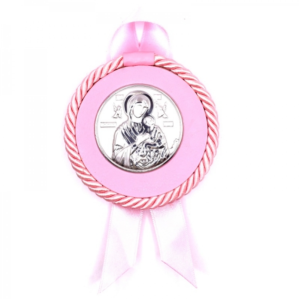 Εικονάκι κούνιας ασημένια σε ροζ για κοριτσάκι και σε σχήμα στρογγυλό έχει πάνω κρδώνι σε ροζ χρώμα και το πίσω μέρος είναι σε ροζ .'Ομορφη είκόνα για το κρεβατάκι του μωρού σας .Το εικονάκι η διάσταση είναι Υ: 7.5cm x Π: 7.5 cm |
