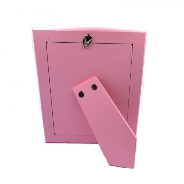 Children's silver frame for a little girl in pink color, it has a glossy finish on the frame, it has little girls and dogs, the back of the frame is made of pink wood. The frame is H: 17.0 cm x W: 13.0 cm, the dimension of the photo is W: 9.0 cm x H:13.0 cm