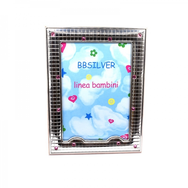 Children's silver frame for a baby girl in pink color, it has a matte and glossy finish, it has Swarovski on it, the back of the frame is with pink velvet. The frame is H: 16.0 cm x W: 12.5 cm, the size of the photo is W: 9.0 cm x H :13.0 cm |