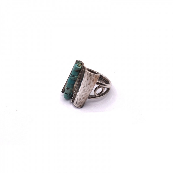 Δαχτυλίδι ασημένιο 925 χειροποίητο αντικέ με τυρκουάζ πέτρα πάνω είναι σφυρήλατο και λουστρέ φινίρισμα.Το νούμερο του δαχτυλιδιού είναι το 55.Μπορείτε να το φοράτε κάθε μέρα.