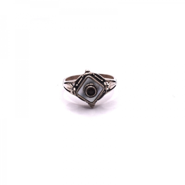Δαχτυλίδι ασημένιο αντικε 925 χειροποίητο με φίλντισι και γρανάδα πέτρα και λουστρέ φινίρισμα.Το νούμερο του δαχτυλιδιού είναι το 55.Μπορείτε να το φοράτε κάθε μέρα.