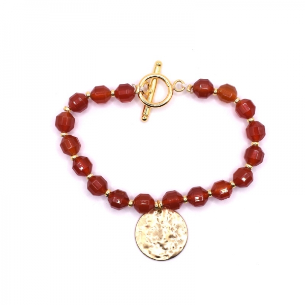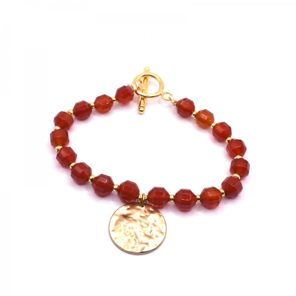 Bραχιόλι φω σε χρυσό χρώμα,είναι περαμένες σε ατσαλόσυρμα οι πέτρες κορνεόλη στην μέση έχει ένα στρογγυλό μοτιφ.'Ομορφο δώρο για σας και για τους φίλους σας.
