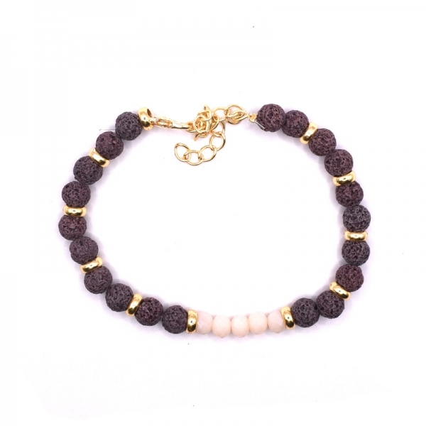 Βραχιόλι φω σε χρυσό χρώμα περασμένες σε ατσαλόσυρμα μπεζ πέτρες και καφέ λάβα,στο τελείωμα είναι με κούμπωμα.Είναι ευκολοφόρετο μπορείτε να φοράτε κάθε μέρα.'Ομορφο δώρο για σας και για τους φίλους σας.