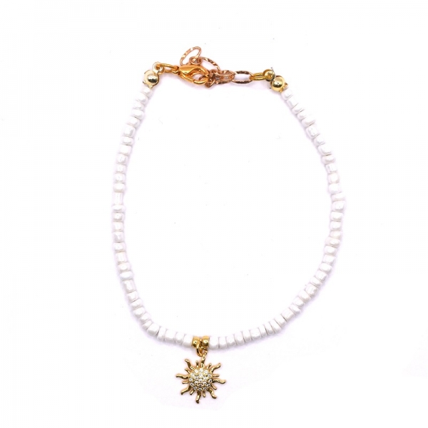 Βραχιόλι φω σε χρυσό χρώμα περασμένο σε ατσαλόσυρμα άσπρες μικρές πέτρες στην μέση έχει μοτίφ ήλιο με ζιργκον,στο τελείωμα είναι με κούμπωμα.Είναι ευκολοφόρετο μπορείτε να φοράτε κάθε μέρα.'Ομορφο δώρο για σας και για τους φίλους σας.