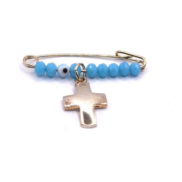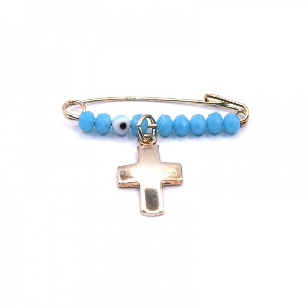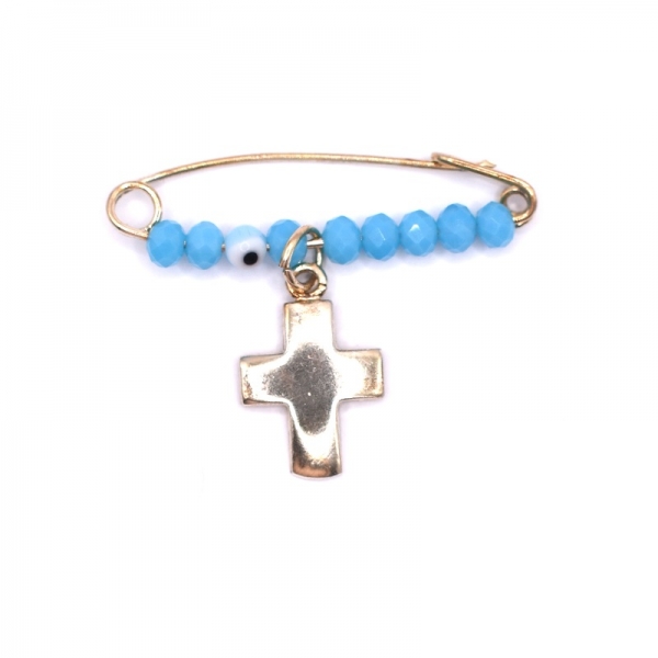 Υπέροχη παιδική παραμάνα σε ασήμι 925 επιχρυσωμένο,έχει πάνω στην παραμάνα σιελ χάντρες κρέμεται ένας σταυρός και ματάκι γίνεται και μενταγιόν σε λουστέ φινίρισμα.Μπορείτε να το κρεμάσετε στο κρεβατάκι του μωρού σας.