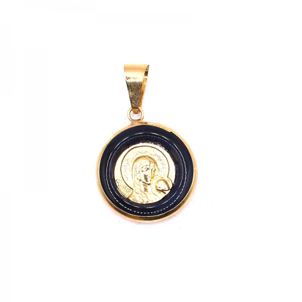 Παναγία στρογγυλή σε χρυσό Κ14 με μπλέ.Όμορφο δώρο για να το κρεμάσετε στο μαξιλάρι του παιδιού σας.
